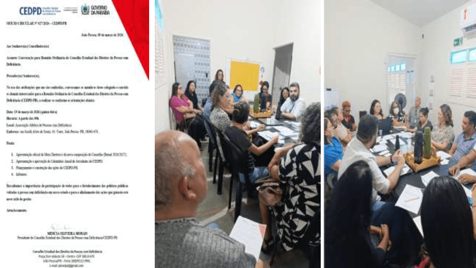Deficiência – CEDPD/PB realizada no dia 19/03/2026 às 9h na sala de reuniões da AAPD/PB, tendo